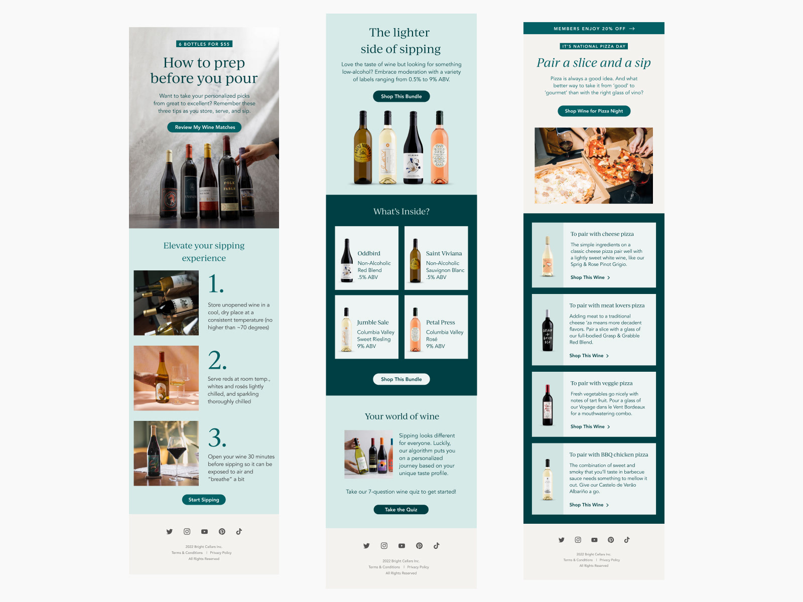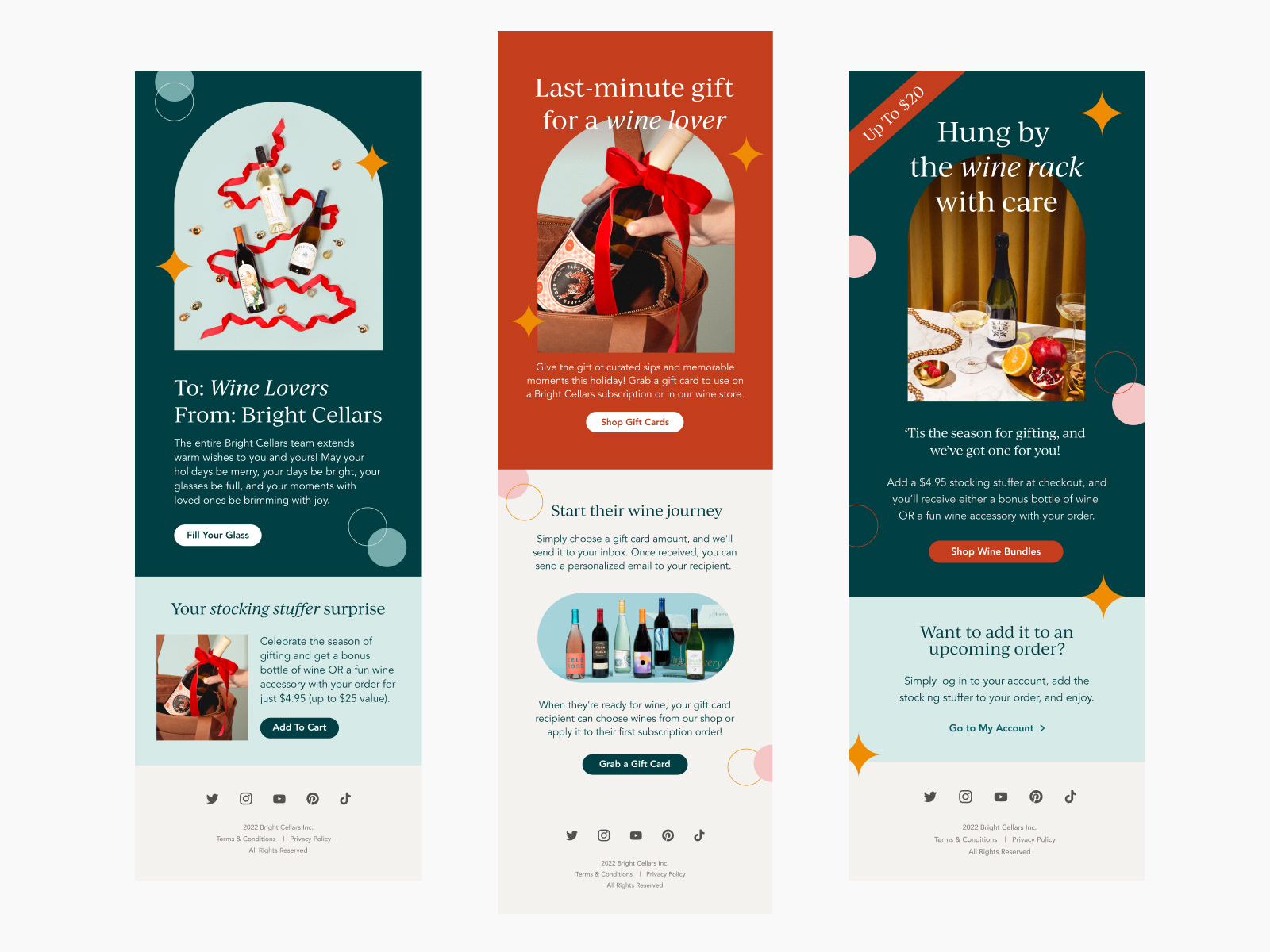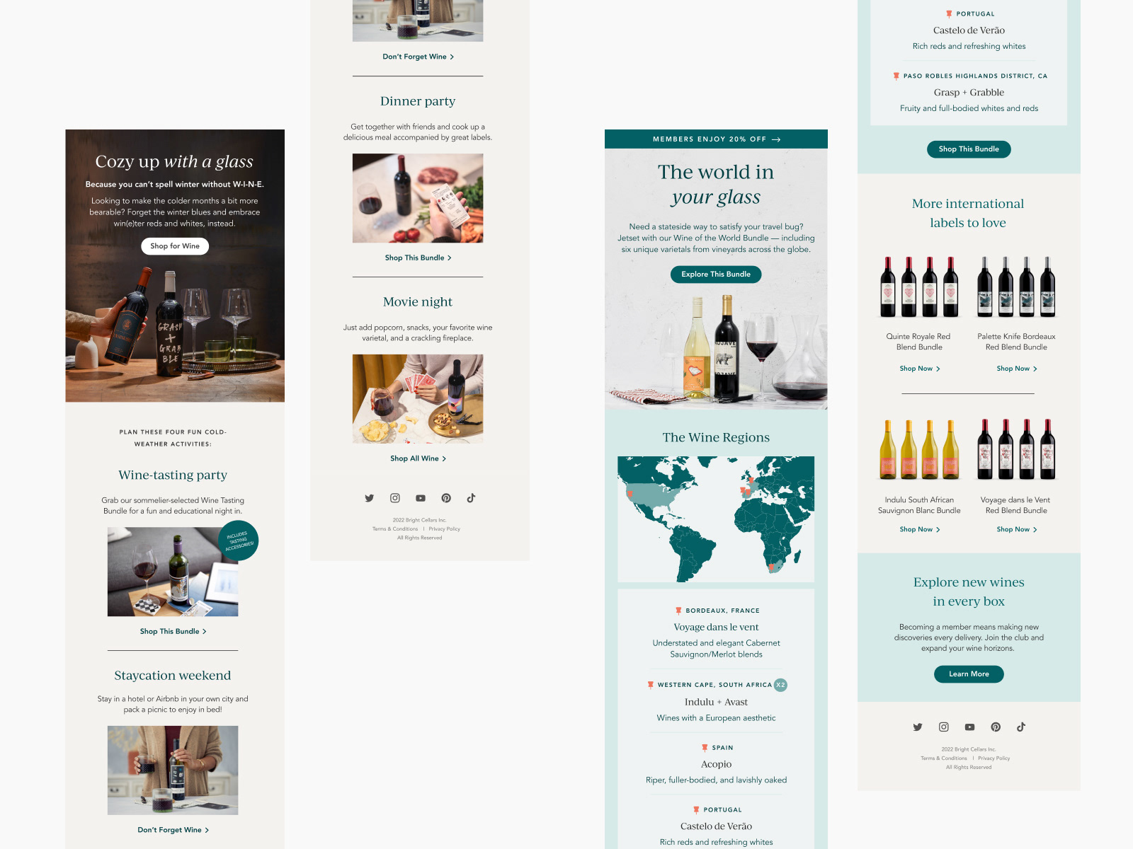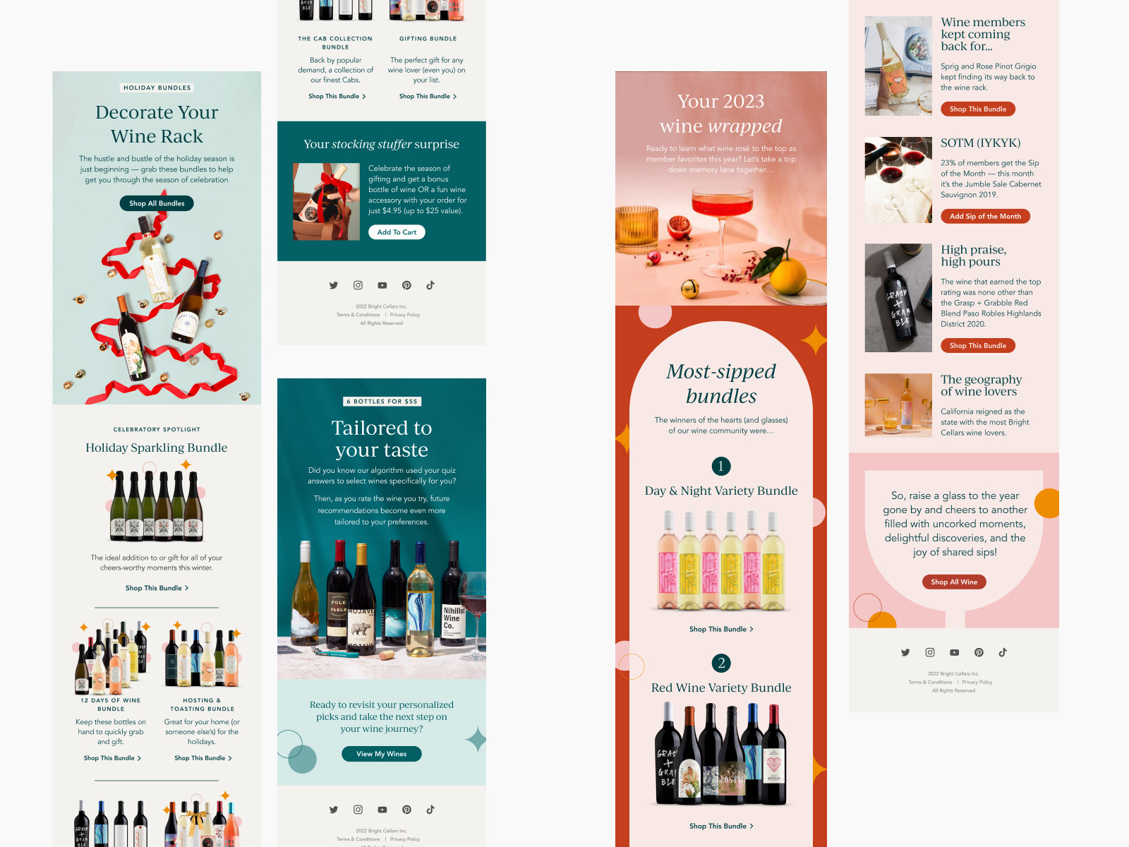 Bright Cellars is a high-end wine club in the US. I've been working with them as a brand and digital designer, being responsible for maintaining the brand's visual style through the design of seasonal and evergreen email campaigns.